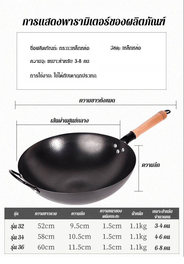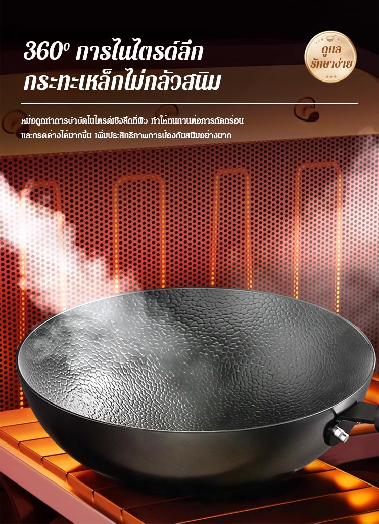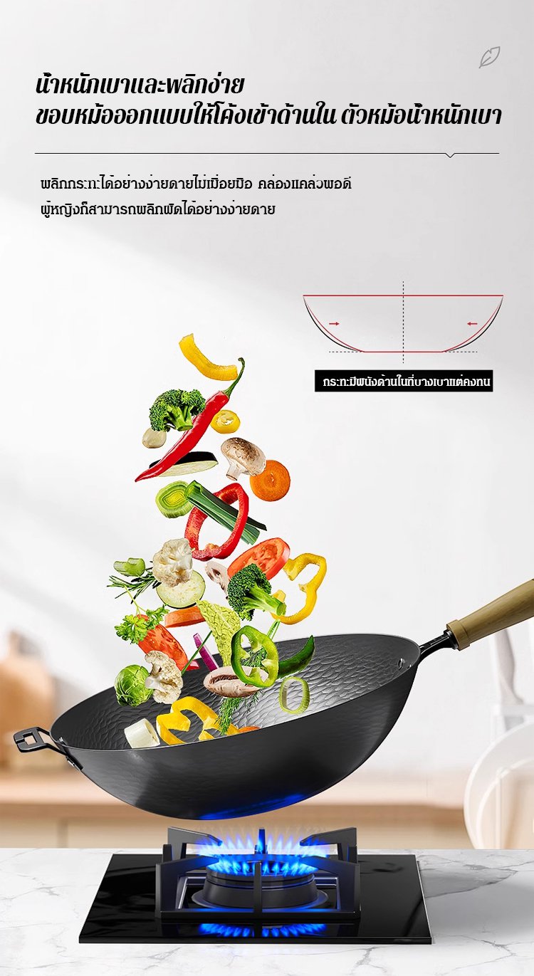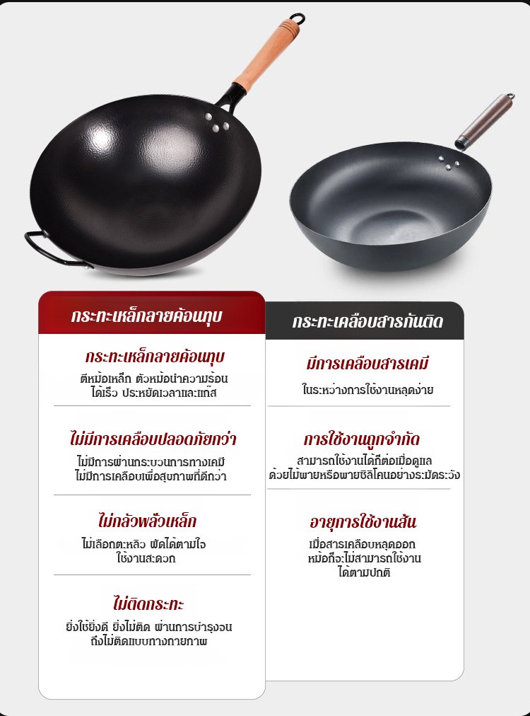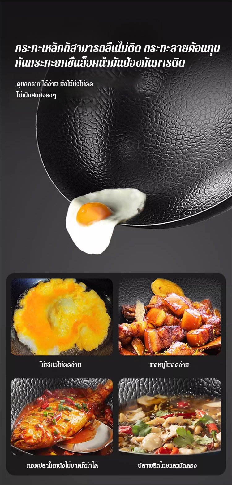 กระทะเหล็กหล่อลายค้อนทุบ ไม่มีชั้นเคลือบ ดีต่อสุขภาพ